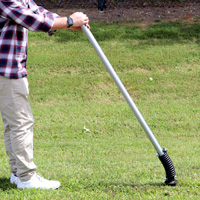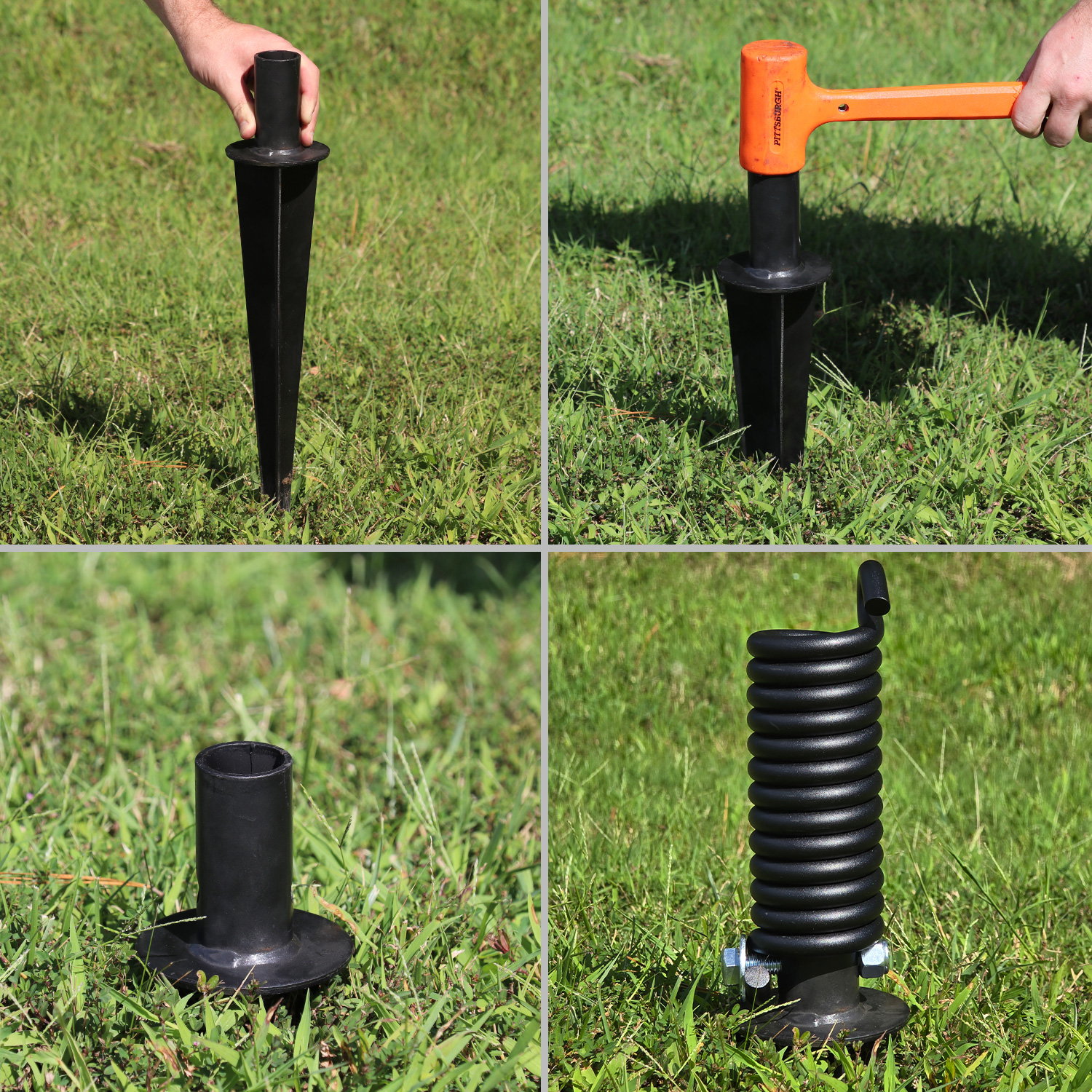 - 4 ft. tall post is offered with a ground spike for installation into dirt or grass.