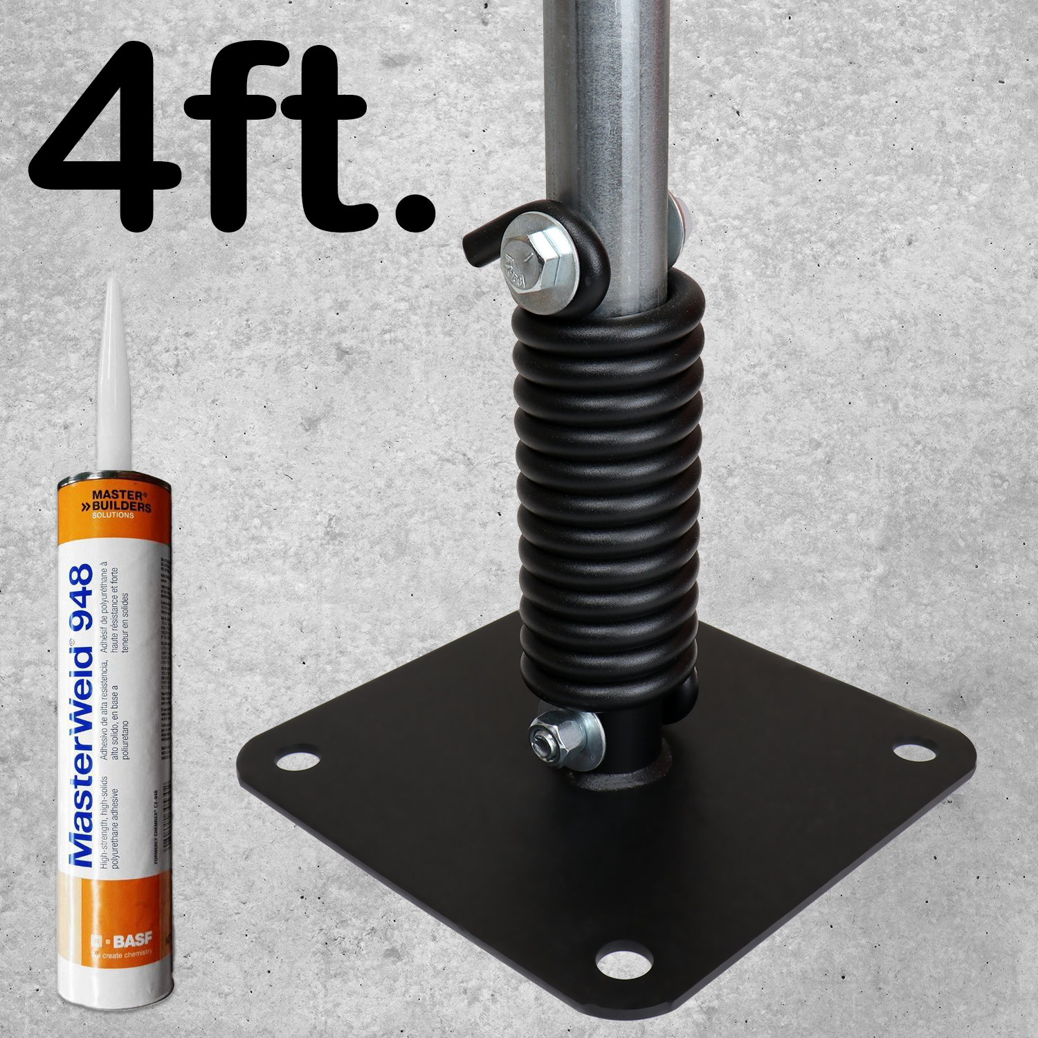 - 4 ft. tall post is offered with adhesive to install into concrete.