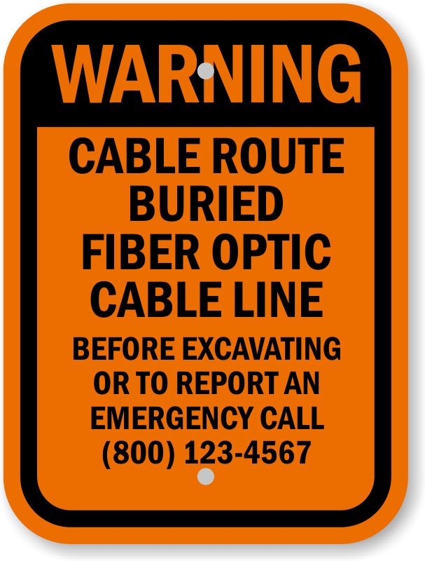 Custom Warning Sign: Cable Route Buried Fiber Optic Cable Line - Before Excavating Or To Report An Emergency Call (800) 123-4567