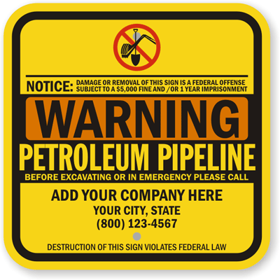 Alert excavators to the presence of a petroleum pipeline with this custom warning sign.