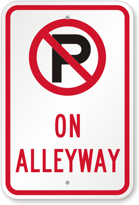 No Parking Sign: [No Parking Symbol] On Alleyway K-8819 Learn More...