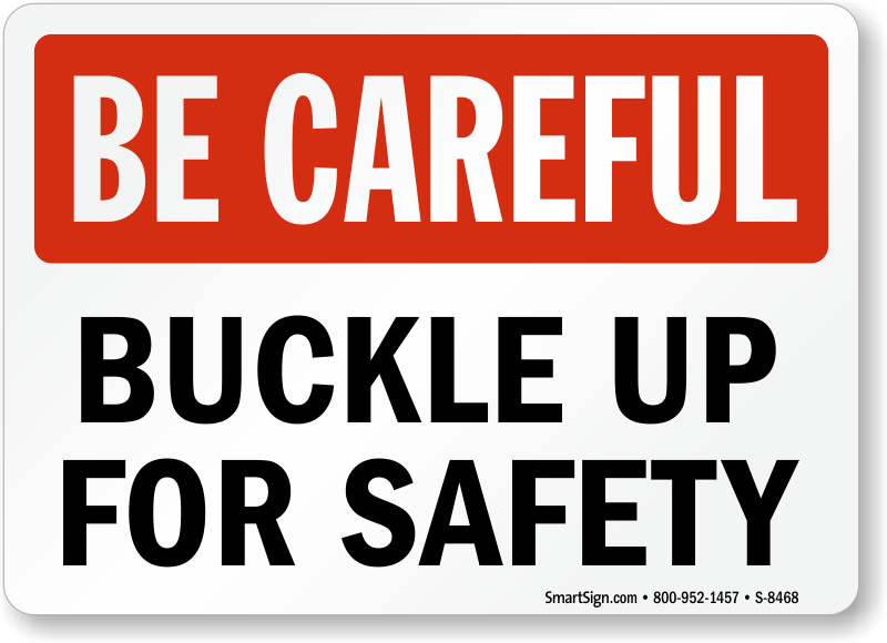Be Careful Sign: Buckle Up For Safety Learn More...