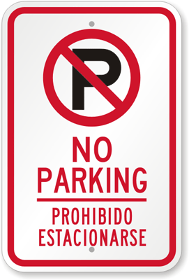 Bilingual Parking Prohibited Sign: No Parking. Prohibido Estacionarse (with No Parking Symbol) Learn More...