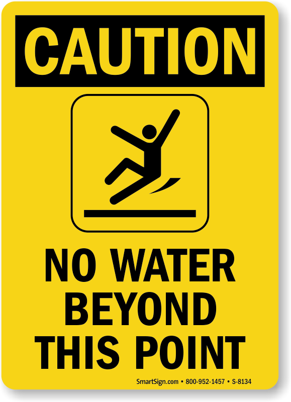 OSHA Caution Sign: No Water Beyond This Point (with Graphic) S-8134