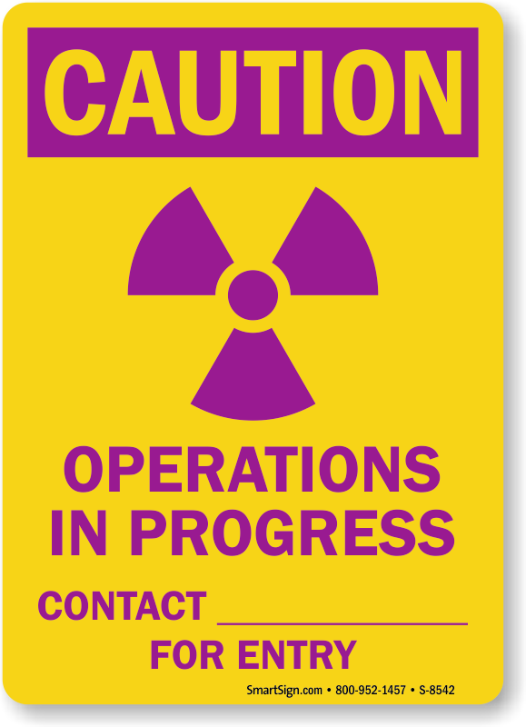 Caution Sign: Caution: Operations In Progress Contact ___________For Entry (with Graphic) S-8542