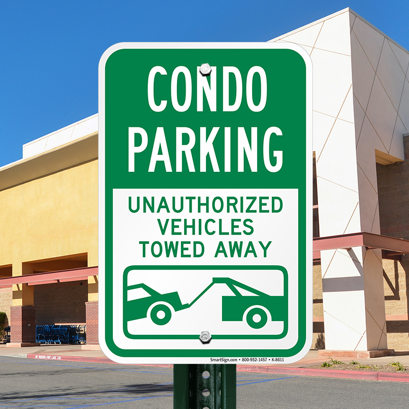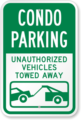 Tow Away Sign: Condo Parking - Unauthorized Vehicles Towed Away (with Car Tow Graphic) K-8611 Learn More...
