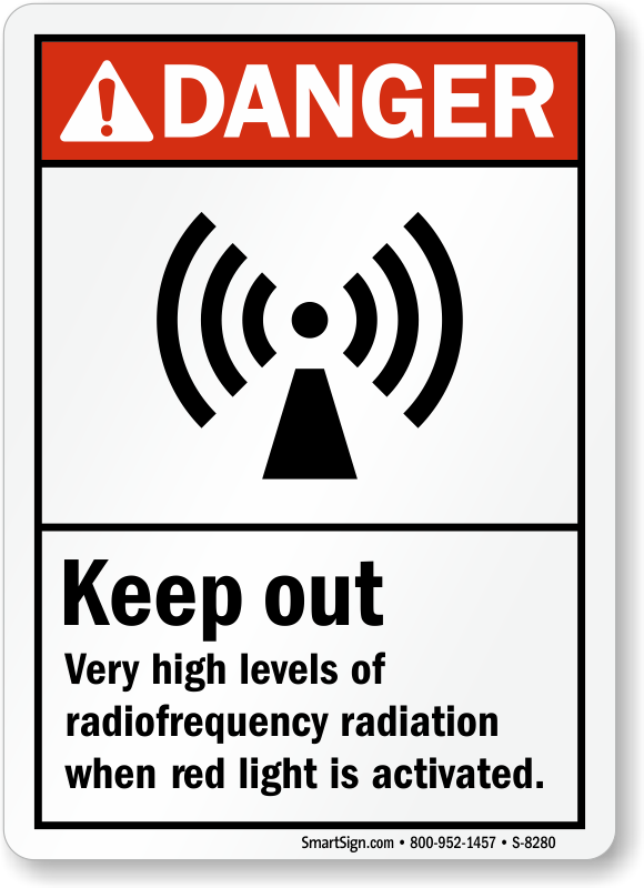 ANSI Danger Sign: Keep Out - Very High Levels Of Radiofrequency Radiation When Red Light Is Activated