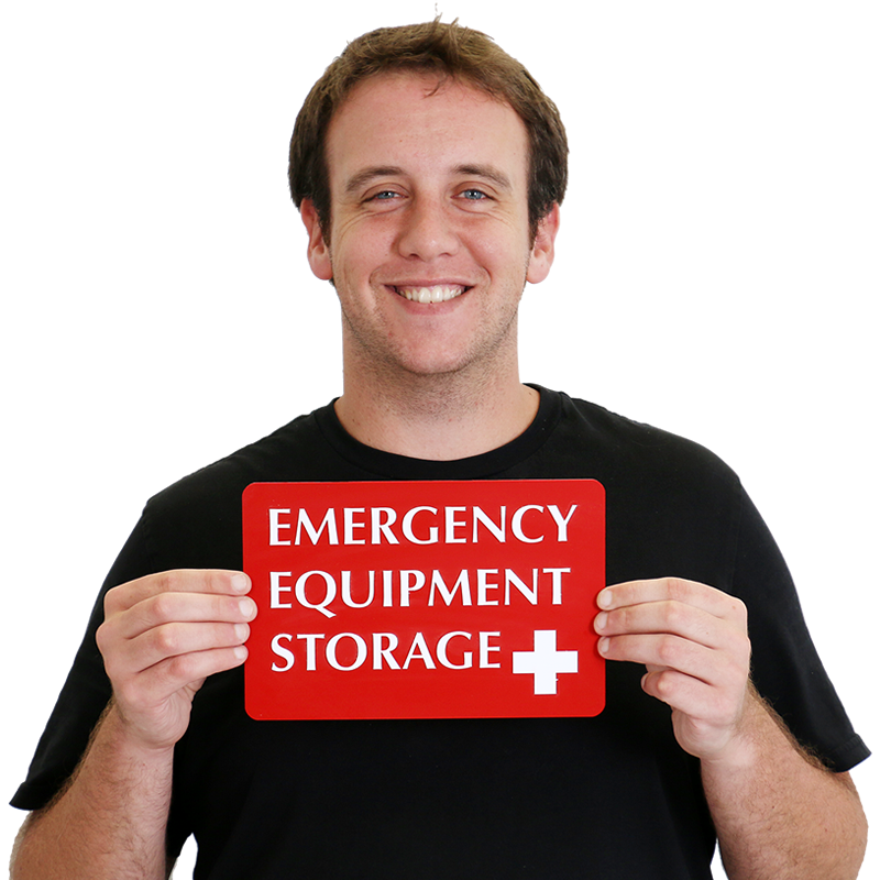 6in. x 9in. TactileTouchâ„¢ Sign: Emergency Equipment Storage with Plus Symbol SE-5160