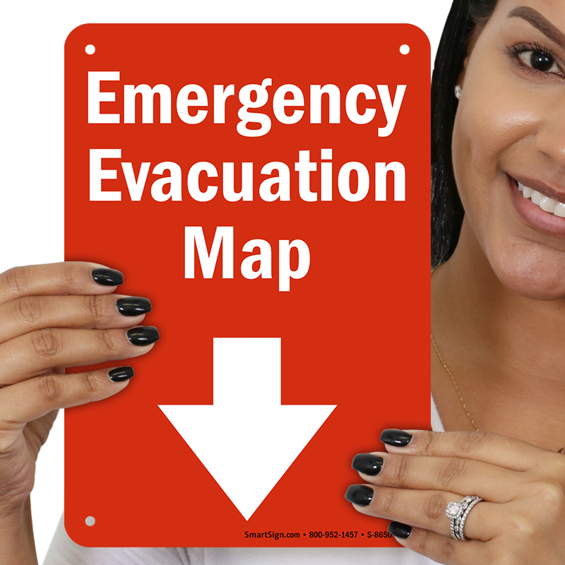 Emergency Evacuation Sign: Emergency Evacuation Map (with Down Arrow) S-8650