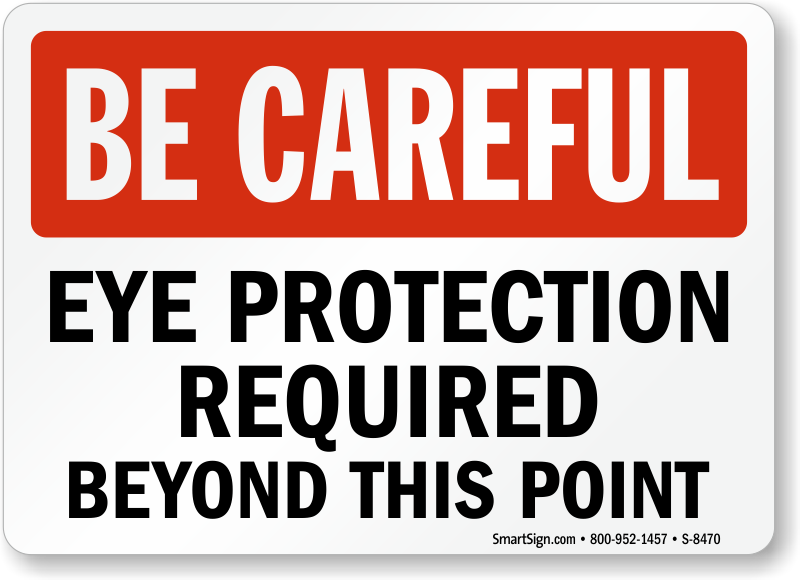 Be Careful Sign: Eye Protection Required Beyond This Point