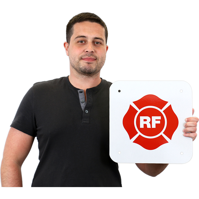 This Florida-approved Roof-Floor Truss sign notifies firefighters of potentially dangerous truss construction. The sign complies with Florida state fire regulations.