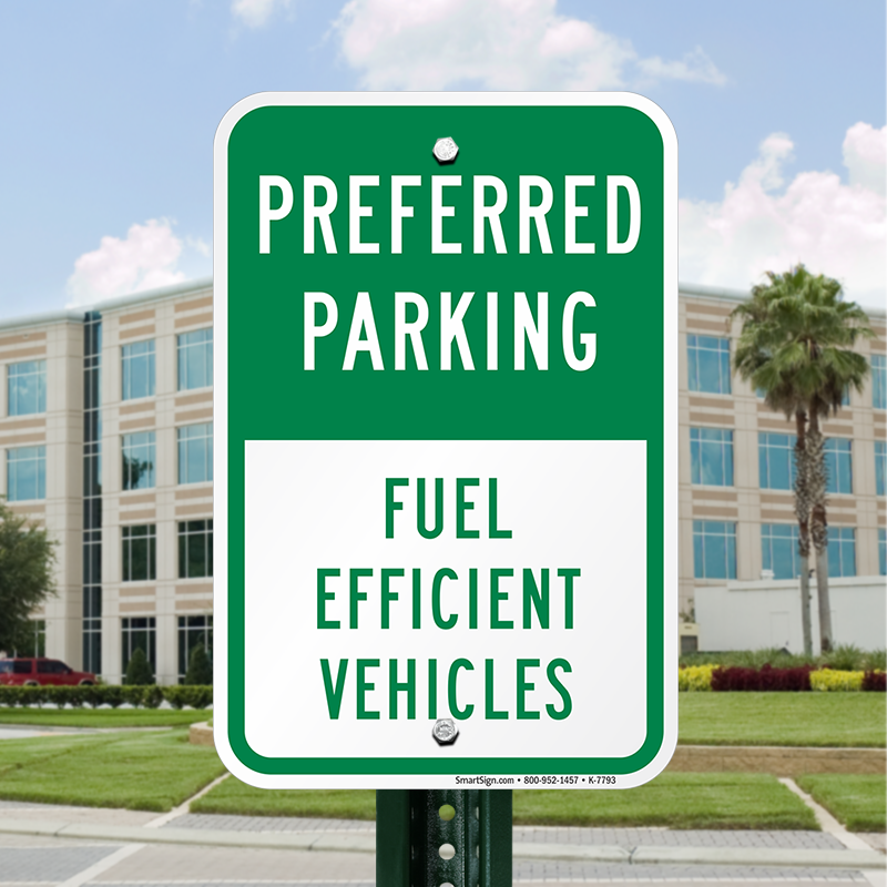 Parking Sign: Preferred Parking: Fuel Efficient Vehicles K-7793 Learn More...