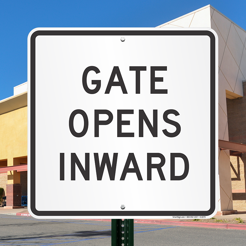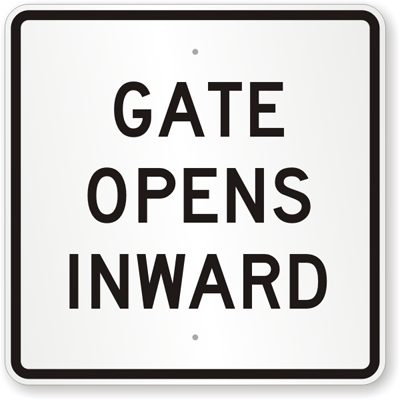 Gate Warning Sign: GATE OPENS INWARD