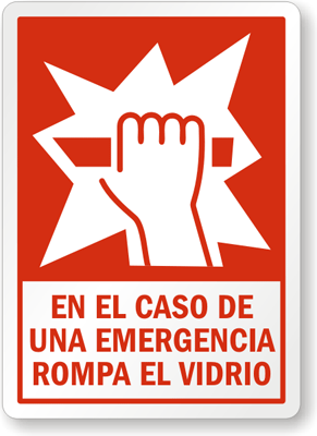 Spanish In Case Of Emergency Label: En El Caso De Una Emergencia Rompa El Vidrio