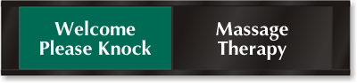 - Sliding panel with "Massage Therapy" on it reveals either "Welcome - Please Knock" or "In Session - Do Not Disturb".