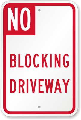 Driveway Sign: NO BLOCKING DRIVEWAY K-8433