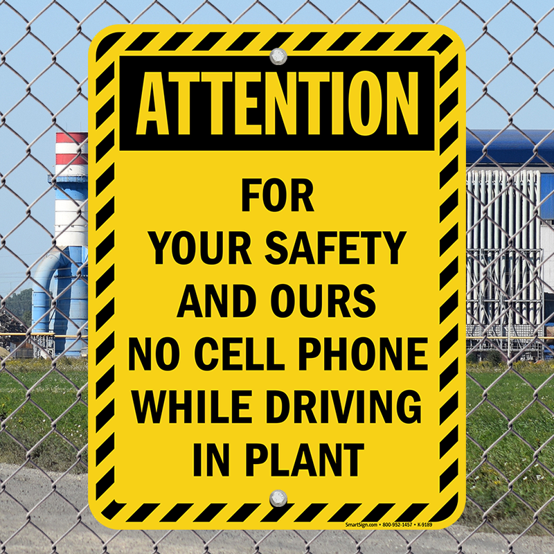 Plant Safety Sign: Attention - For Your Safety And Ours No Cell Phone While Driving In Plant K-9189 Learn More...