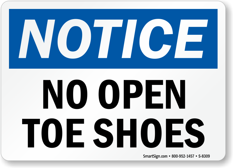 Shoes provide important protection. Post a No Open Toe Shoe Sign to protect workers.