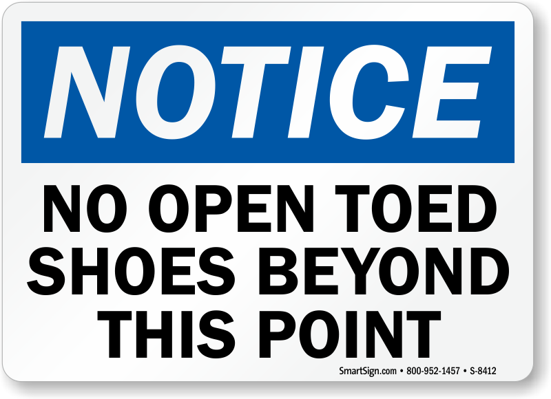 Save the sandals for the beach. Post No Open Toed Shoe Signs in dangerous areas.