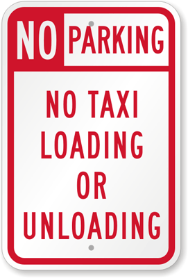 No Parking Sign: No Parking No Taxi Loading Or Unloading K-8909 Learn More...