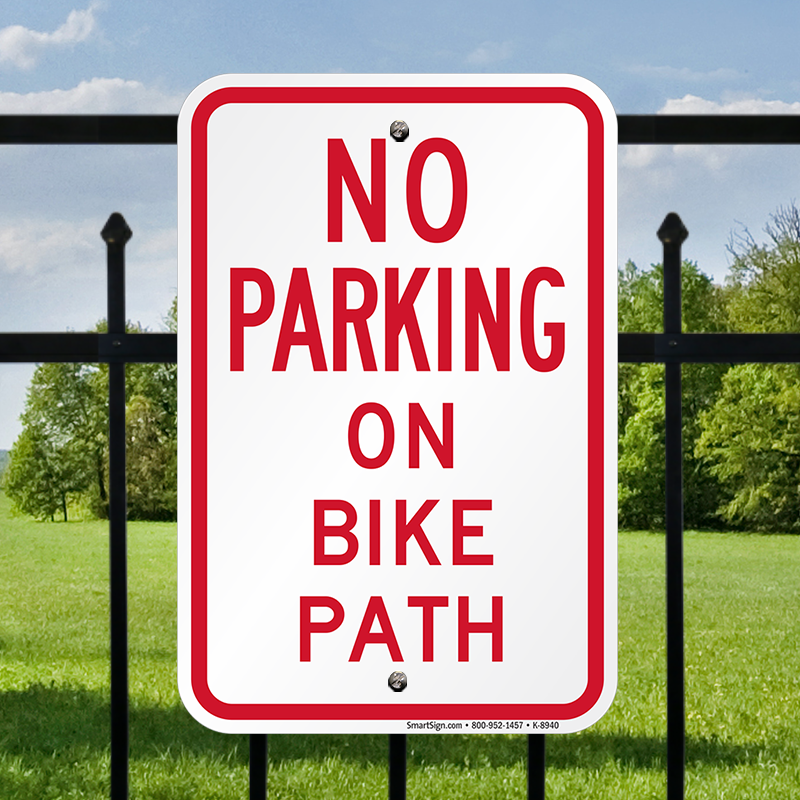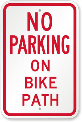 No Parking Sign: NO PARKING ON BIKE PATH K-8940 Learn More...