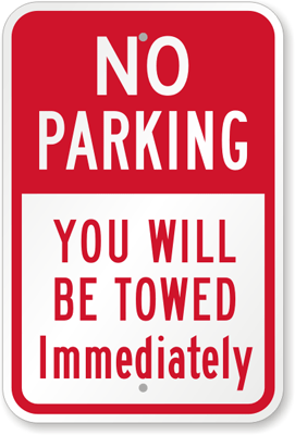 No Parking Sign: No Parking: You Will Be Towed Immediately Learn More...