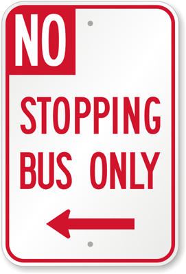 No Stopping Sign: No Stopping Bus Only With Arrow (Left) Learn More...