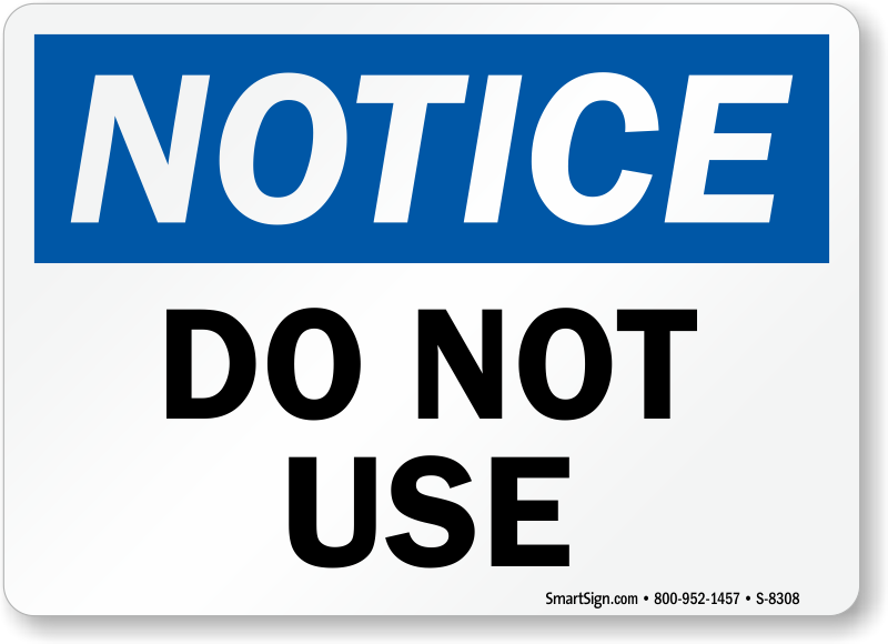 Nothing can be clearer than a simply stated sign. Do Not Use Signs are hard to misunderstand.