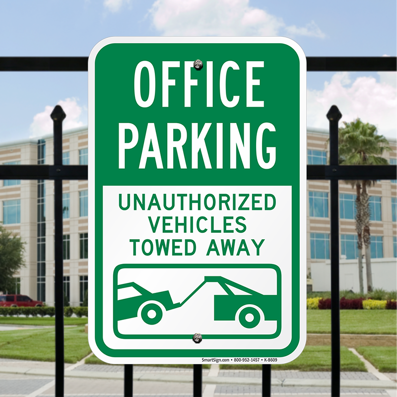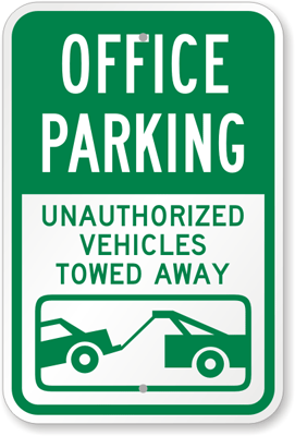 Tow Away Sign: Office Parking - Unauthorized Vehicles Towed Away (with Car Tow Graphic) K-8609 Learn More...