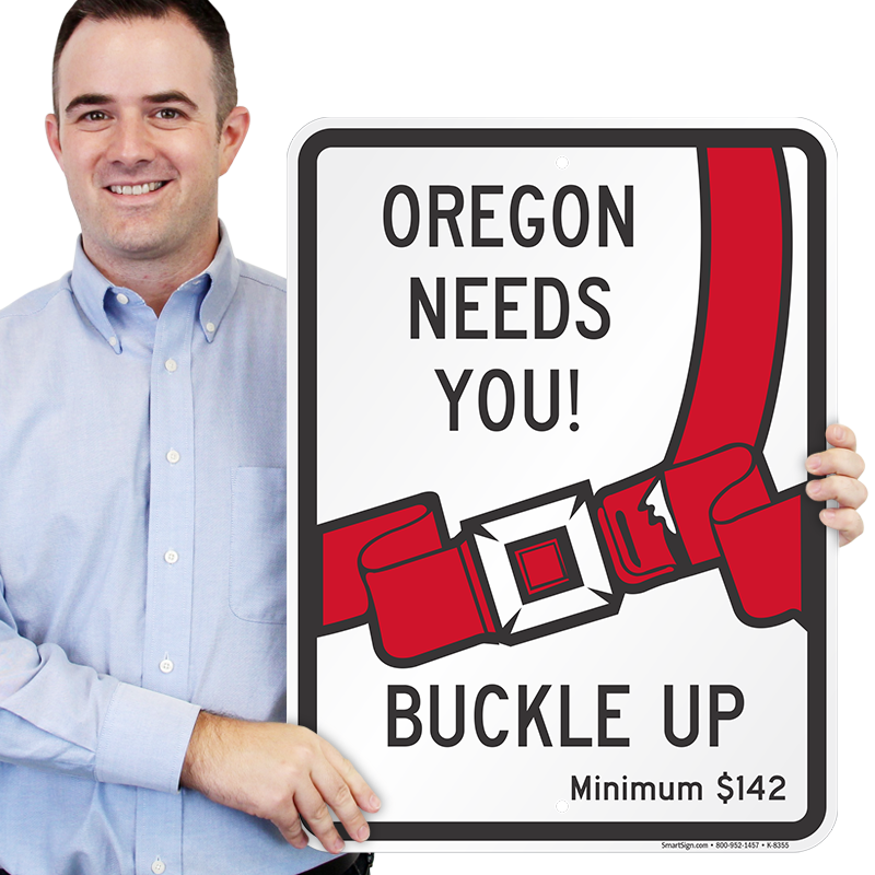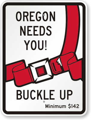 State Buckle Up Sign: Oregon Needs You! Buckle Up, Minimum $142 (with Seat Belt Buckle Graphic) K-8355