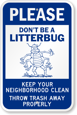 No Littering Sign: Please Don’t be a Litterbug, Keep Your Neighborhood Clean, Throw Trash Away Properly K-7845 Learn More...