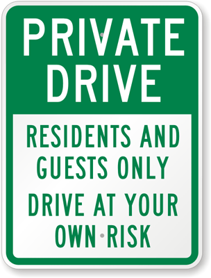 Private Drive Sign: Residents And Guests Only Drive At Your Own Risk K-9140 Learn More...