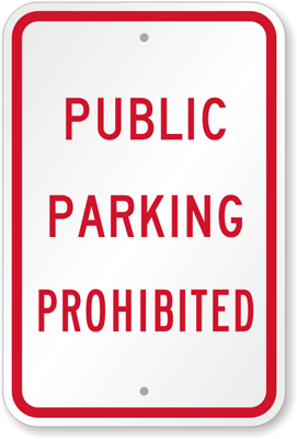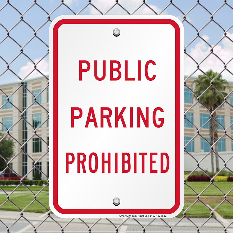No Parking Sign: PUBLIC PARKING PROHIBITED K-8847 Learn More...