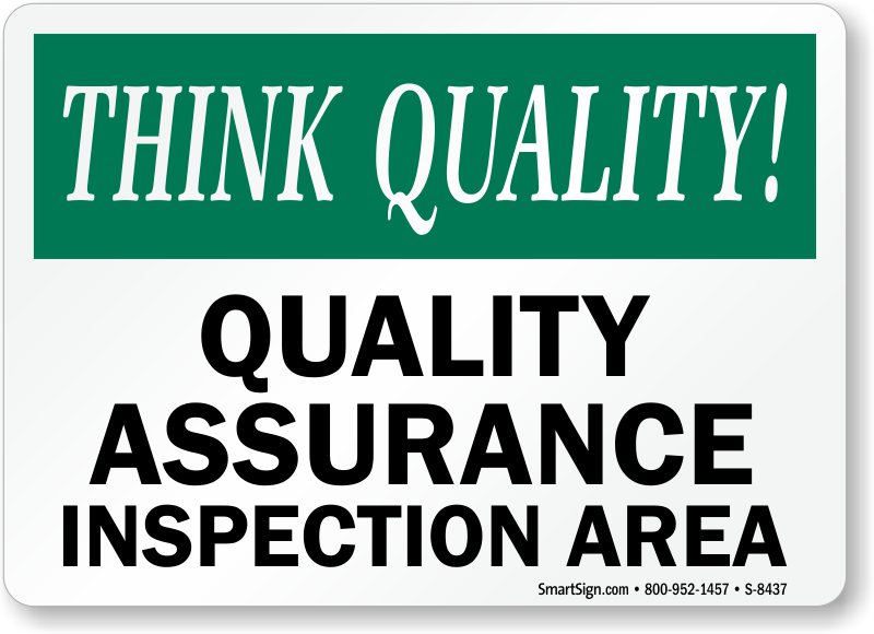 Keep your quality a priority with a Think Quality Sign. Quality Assurance Inspection Areas designate QA locations.
