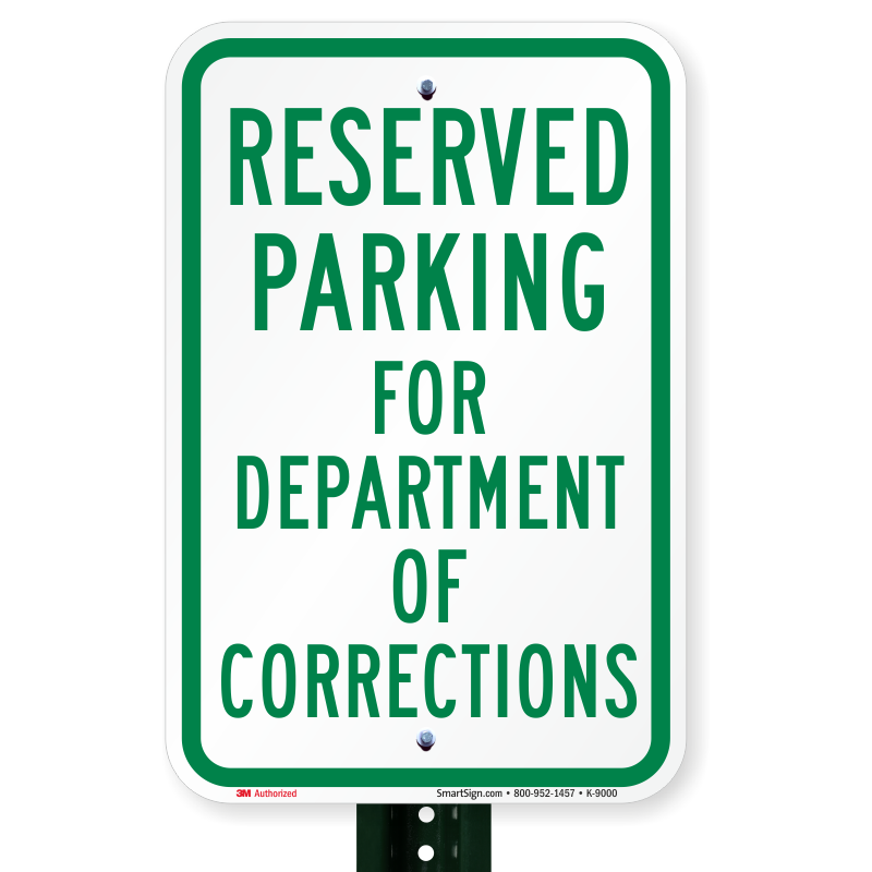 Reserved Parking Sign: Reserved Parking For Department Of Corrections K-9000 Learn More...