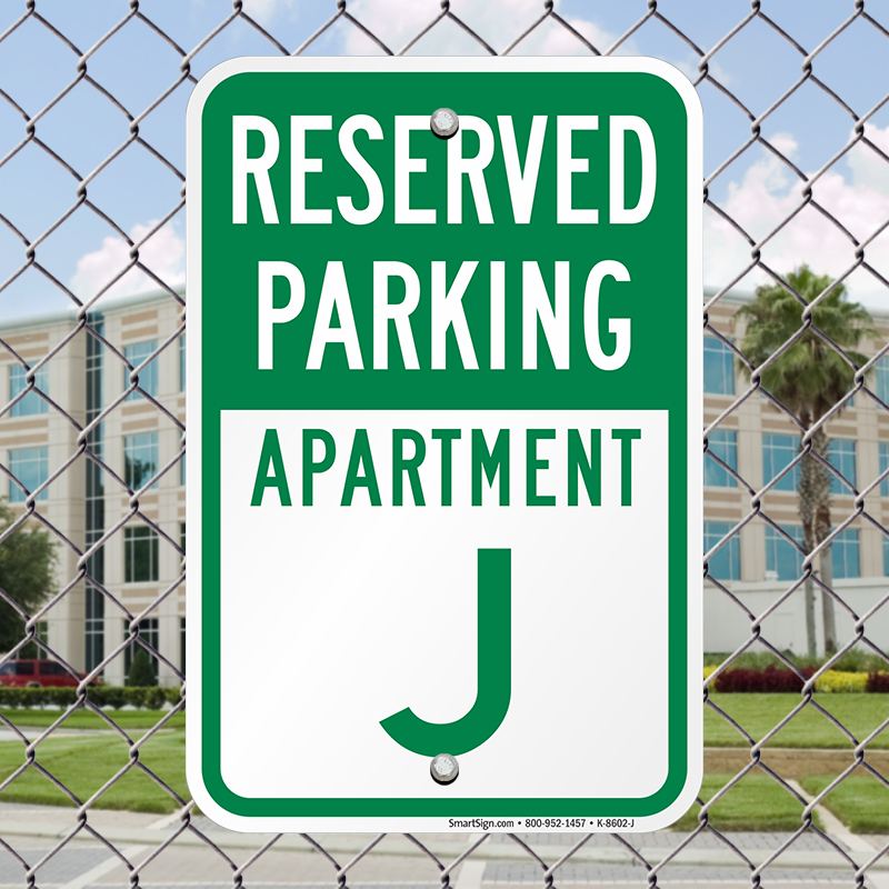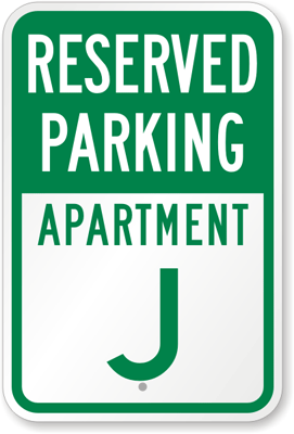 Reserved Parking Sign: Reserved Parking, Apartment J Learn More...