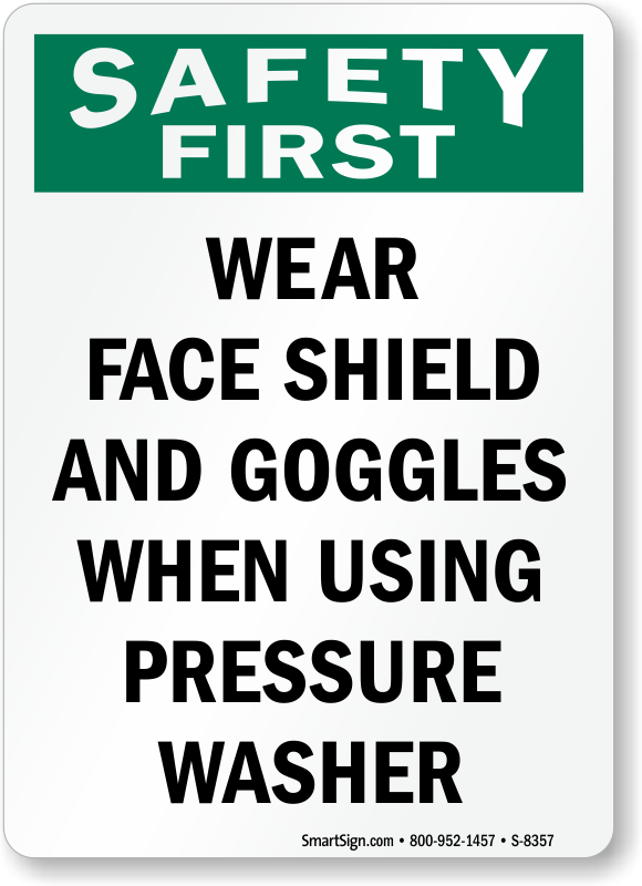 OSHA Safety First Faceshield Required Sign: Wear Face Shield And Goggles When Using Pressure Washer