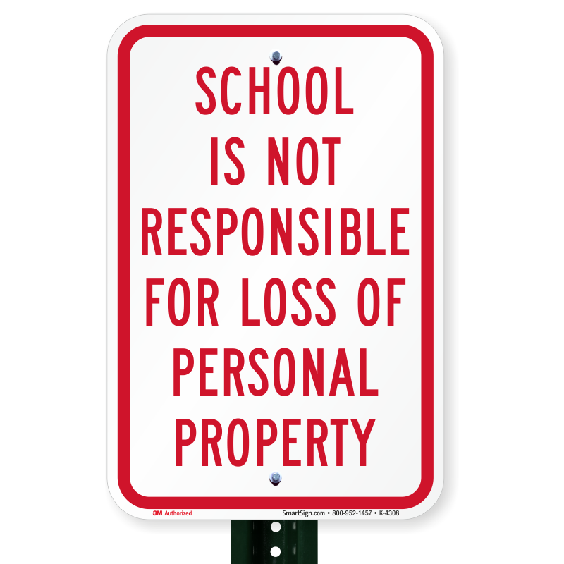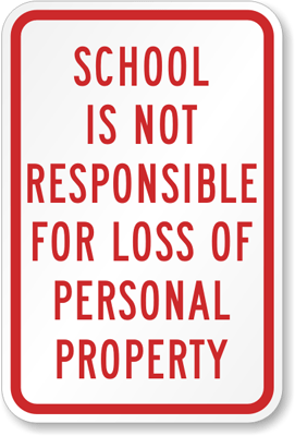 School Sign: School is not Responsible for Loss of Personal Property Sign K-4308 Learn More...