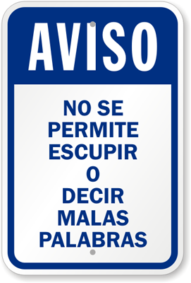 A No Spitting Or Cursing Allowed Sign in Spanish facilitates the prevention from Spanish speakers of spitting and of speaking foul language.