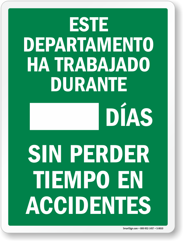 Spanish Mark-a-Dayâ„¢ Safety Scoreboard Sign: Este Depatamento Ha Trabajado Durante ____ Dias Sin Perder Tiempo En Accidentes S-8610