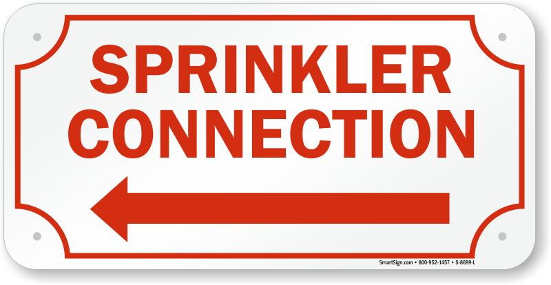 Use our Sprinkler Connection Sign with left arrow and make it easy for maintenance personnel to identify important components in your fire sprinkler system.