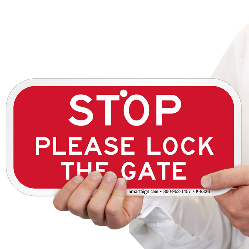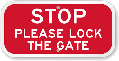 Gate Sign: STOP: Please Lock The Gate K-8326