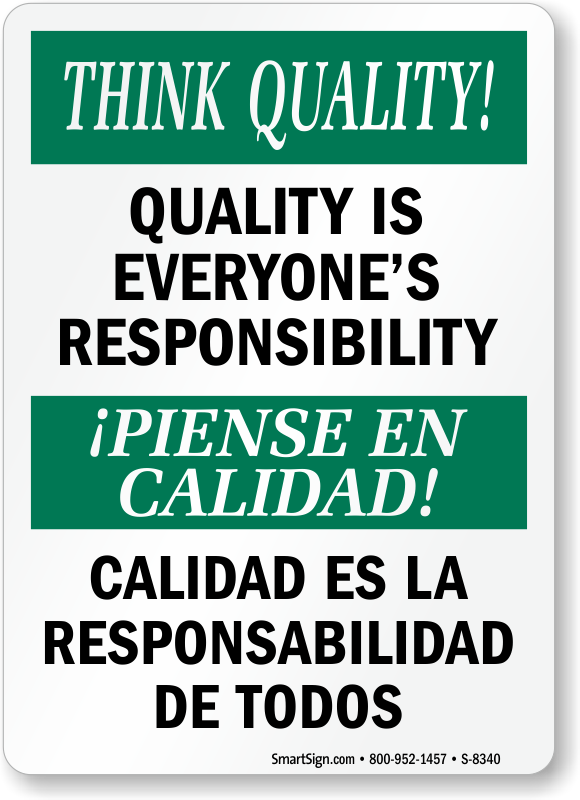 This Think Quality Signs is made from high quality aluminum material. Bilingual signs send your message across clearly so everyone knows the rules and the correct safety procedures.