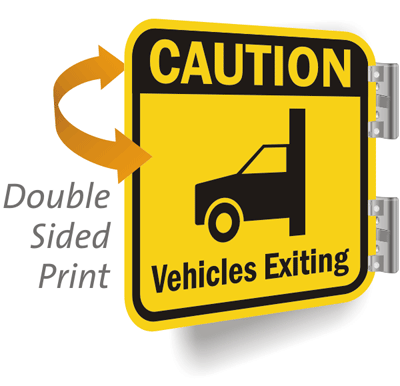 Ideal for any type of garage or parking lot, this double sided Caution Vehicles Exiting sign will warn other cars, pedestrians, and bicyclists that cars will be coming. This sign will help keep the traffic flowing and minimize accidents.