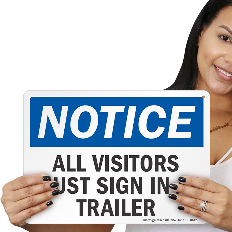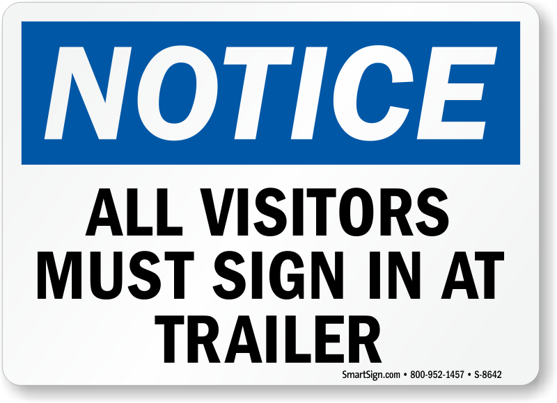Notice Visitors Must Register Sign: All Visitors Must Sign In At Trailer S-8642