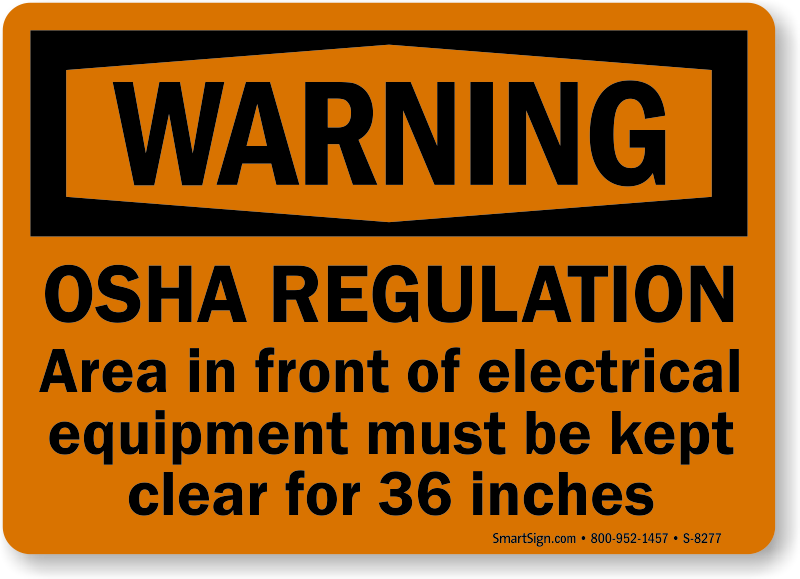 Electrical Equipment Warning Sign: OSHA Regulation - Area In Front Of Electrical Equipment Must Be Kept Clear For 36 Inches S-8277