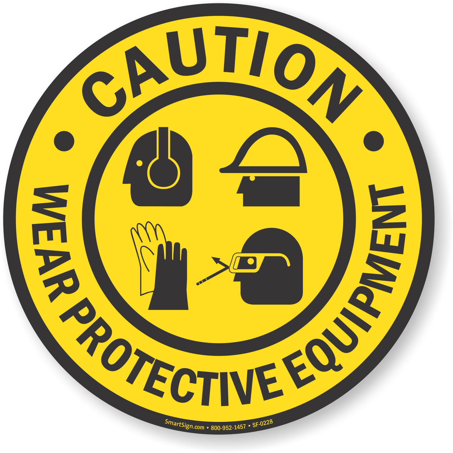 Don't tempt an accident, remind your employees to wear protective equipment with this eye-catching yellow and black floor sign.