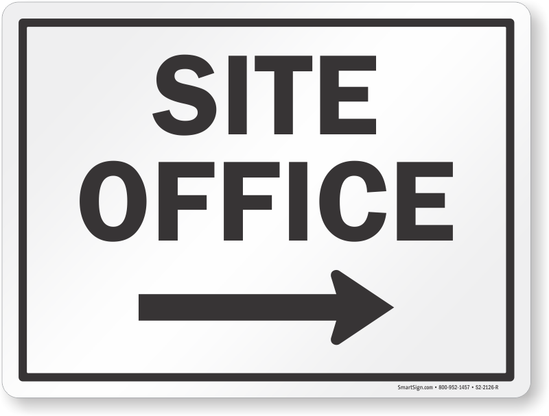 Site Office Sign: Site Office (With Right Arrow) Learn More...