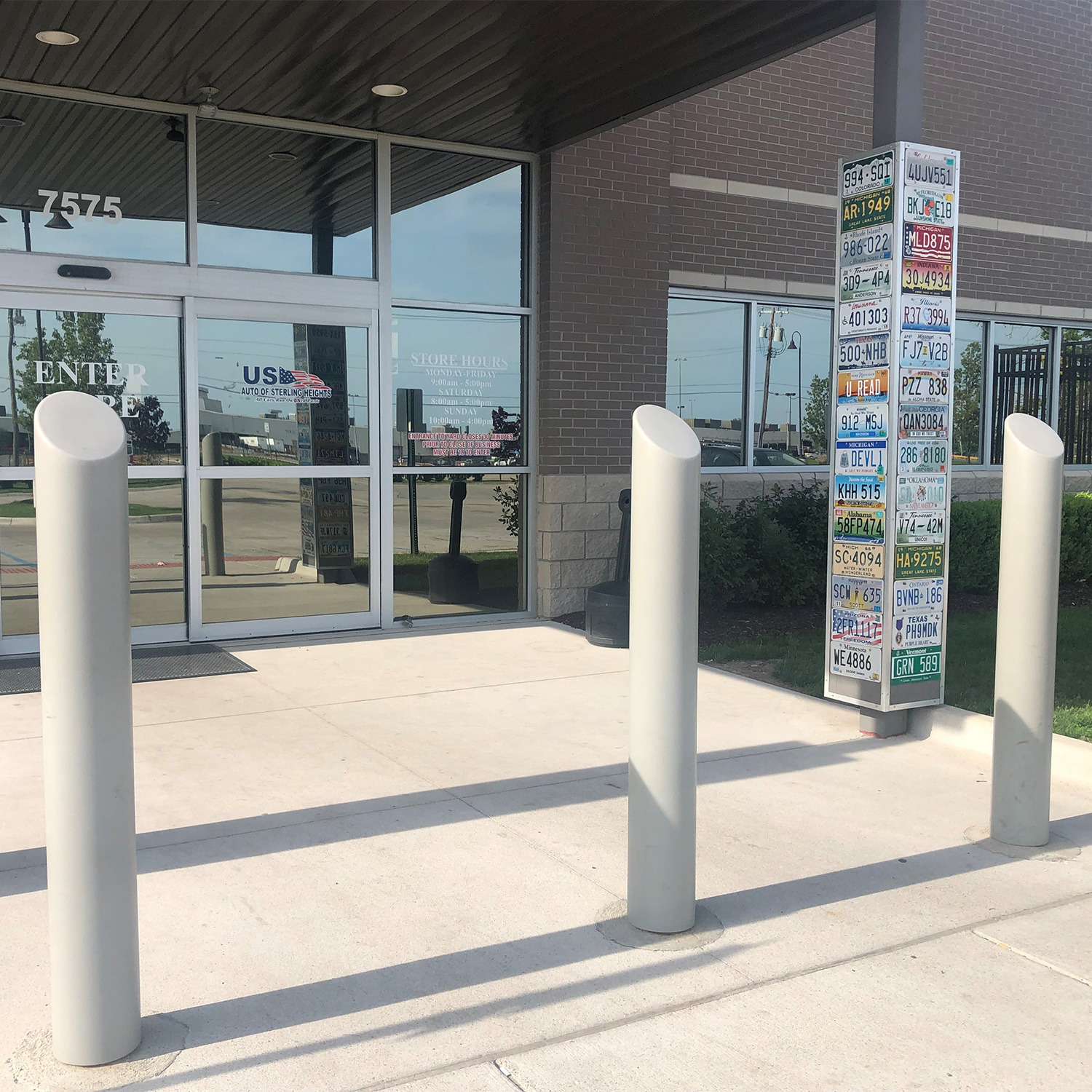 Decorative Bumper Post Sleeves enhance the aesthetics of security posts and steel pipe bollards. Our Decorative Covers are easily installed and are a cost-effective alternative to expensive cast iron, stainless steel or concrete bollards.