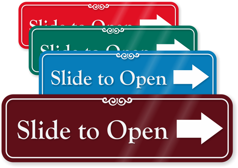 ShowCase™ Wall Sign: Slide To Open (With Right Arrow) SE-7339
